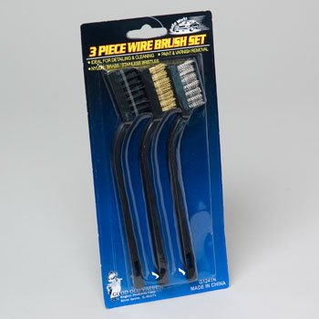 Automotive Wire Detail Brushes. 3 Pack - one with nylon bristles, one with brass bristles, and one with stainless steel bristles. Ideal for detailing and cleaning as well as paint and varnish removal. Read more...